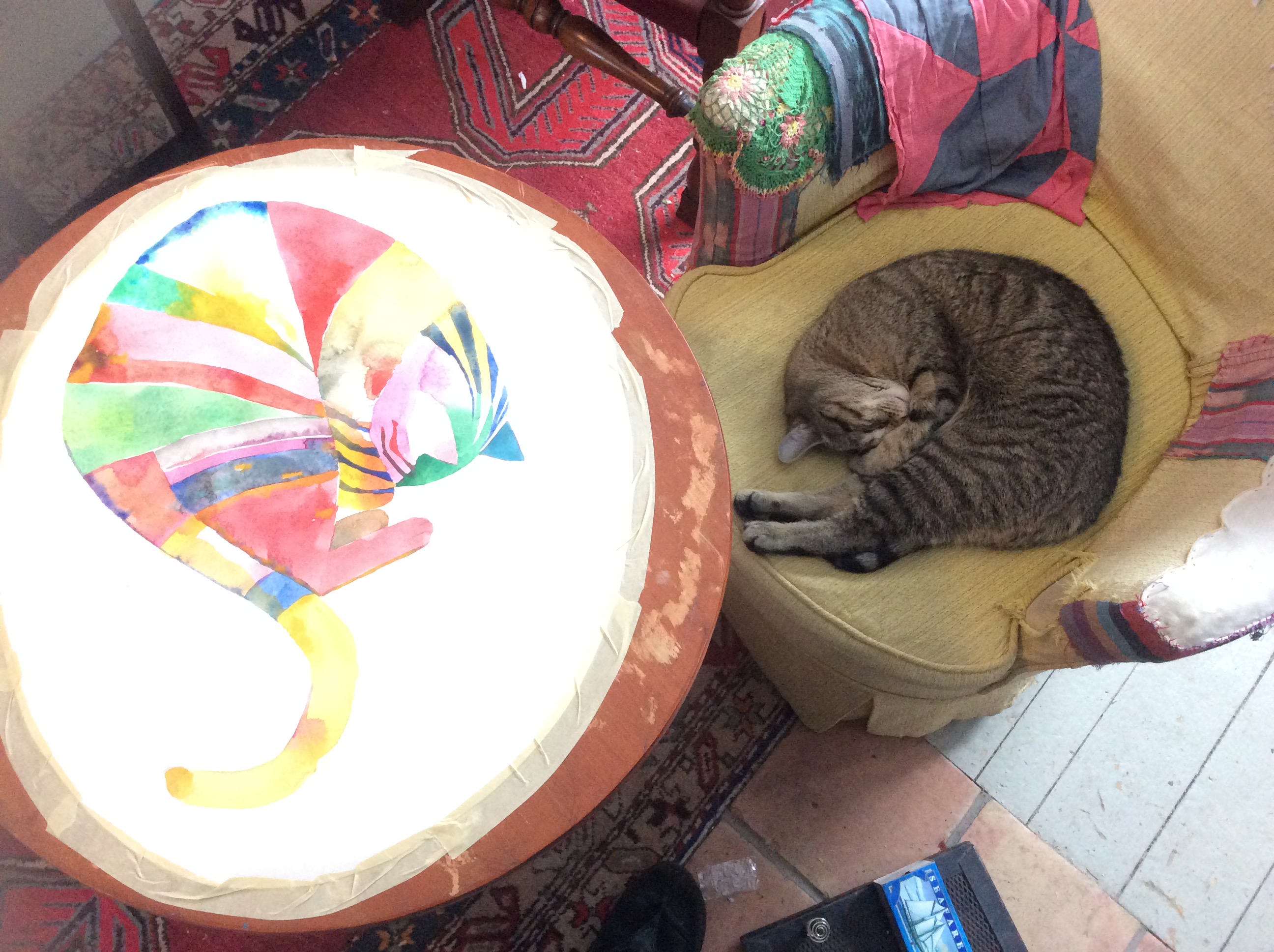 Who am I and how did I get here? I have asked myself that question many times in the last two years. My name is Lynne Mcilvride. I have been an artist ever since I remember. I find speaking awkward: my first language is colour. (It’s a good line that has served me well.) A little background to explain tornados and cats: I have a new studio. No, let me back up. I had an old studio in a farmhouse and an old marriage in that same house. I was happy there until I was dumped like a dog out of a moving vehicle. I grieved. I was kept sane by my friends, my faith and my art. For those of you who have followed my work, you will not be surprised by what happened next: I kept painting using new metaphors. My art has always been personal, autobiographical, symbolic, expressive. A tornado soon appeared in a dream and it started a huge series that has not completely spun out. Here is my artist statement I have reused a few times: