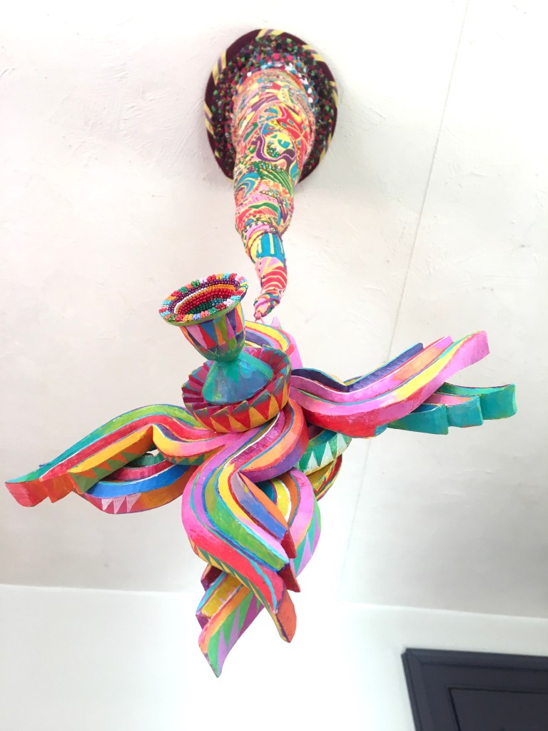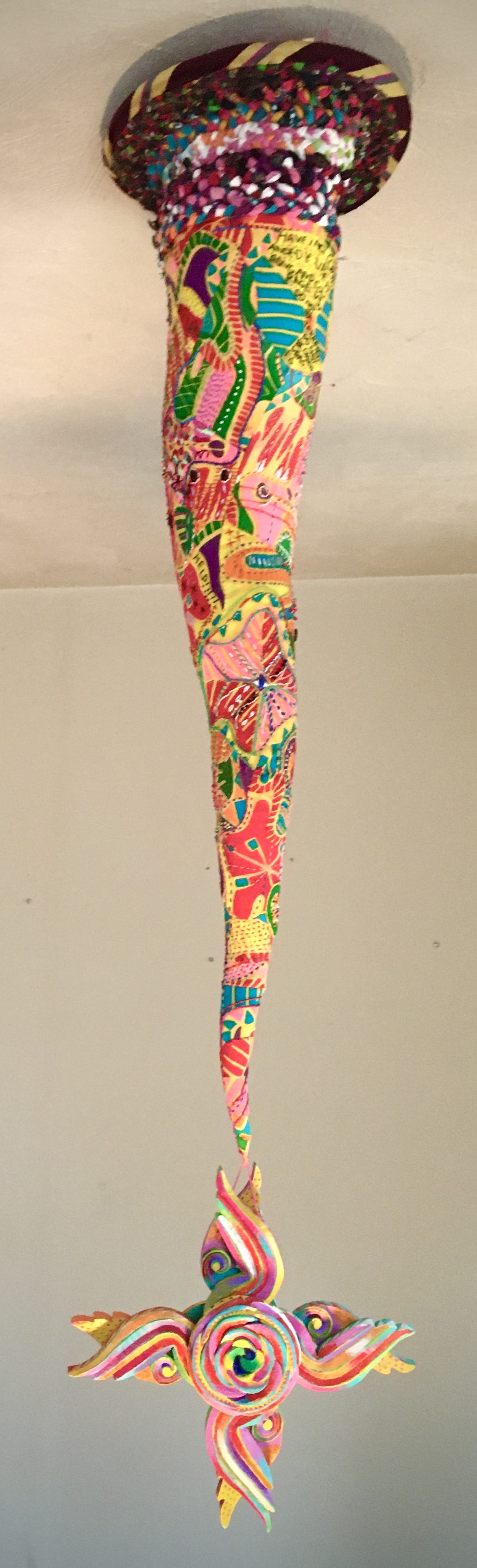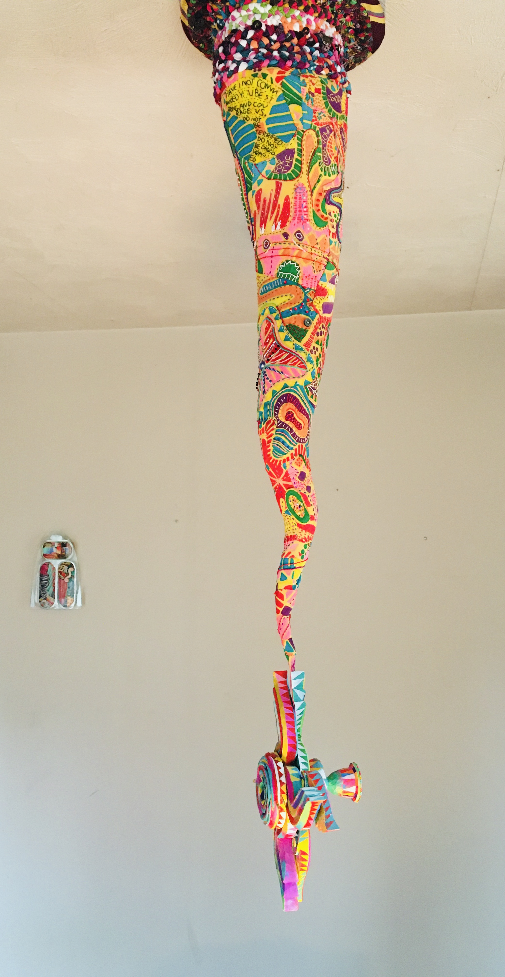 So I made Billy’s supper with the last steak I had nicked from my ex’s farm. He, Al and Wendy met at my house at 7:00. We all sat around my hand-painted table. I put the steak before him with a salad on the side. He drank the wine I offered and for the next three hours proceeded to tell tales of his travels so tall I laughed the entire time at the absurdity. I couldn’t stop laughing. Let’s see… there was the time he stayed the night at a butterfly collector’s house but none of the wings matched. He met a counterfeiter of Canadian tire money and also a prostitute who accepted Canadian tire money. This went on and on. He didn’t stop talking even to eat until finally Wendy stopped him and said, “ Billy, Lynne has made you that nice steak and you haven’t touched it for the last two hours. Are you going to eat it? His reply was mysterious and in my new frame of mind, hilarious. He said Nope not yet. I’m just going to drink wine and talk and when I go back to Lynne’s studio to sleep I’m going to bring the steak with me and cut it into strips with a pair of scissors. Then he looked at the salad and said, and I’m allergic to that green stuff. Then he told stories for another hour and wish I could remember them all. They were crazy tales and I laughed and laughed. I felt under a most hilarious spell. I do remember taking my attention away from him for 5 seconds to ask Al something and when I turned back to look at Billy, he seemed to have fallen asleep sitting at the table until it was his turn to talk again. Just before he was ready to head out into the studio with his scissors and steak, he leaned back in his chair, looked around and said, In my travels I stay at a lot of different places. I stay at some normal places and some weird places. This is definitely one of the weird places. I’m not sure why he said that: it could have been my slightly unconventional decorating or it could be the large series of tornado art-constructions in my studio. Regardless, I found this too hilarious. He thinks I’m weird?! Looking back I felt honoured. He was true to his word and left in the morning before I was up after having coffee with Al and Wendy who still now rise hours before I do.