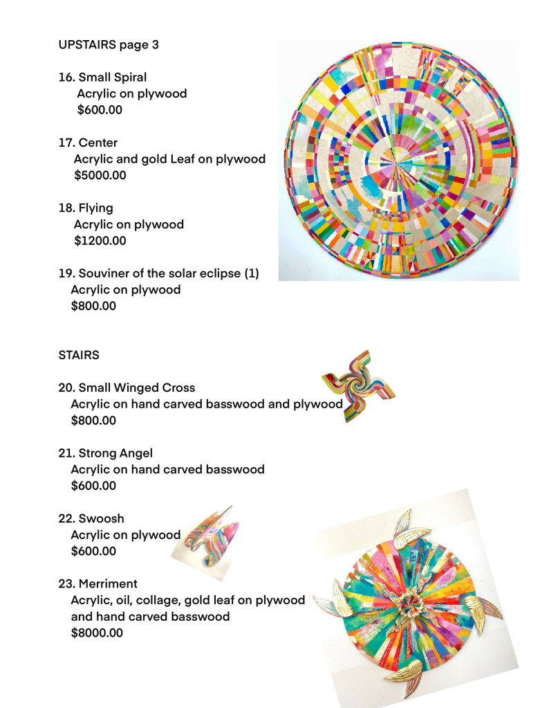 Below is the price list from The Second Wedge where my work will be showing until February 7.