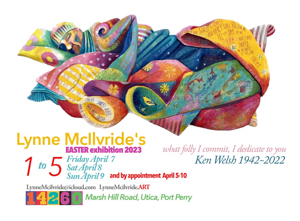 It is my pleasure to present another annual Easter Art Show of my recent work. March 29, 30 and 31 from 1:00 to 5:00 daily or email for an appointment (LynneMcilvride@icloud.com). 14260 Marsh Hill Road Utica Ontario. I look forward to seeing you! I am working on a new exciting series of painted basswood CATS. As usual, there will also be older work including the painted relief sculptures dedicated to Ken Welsh.