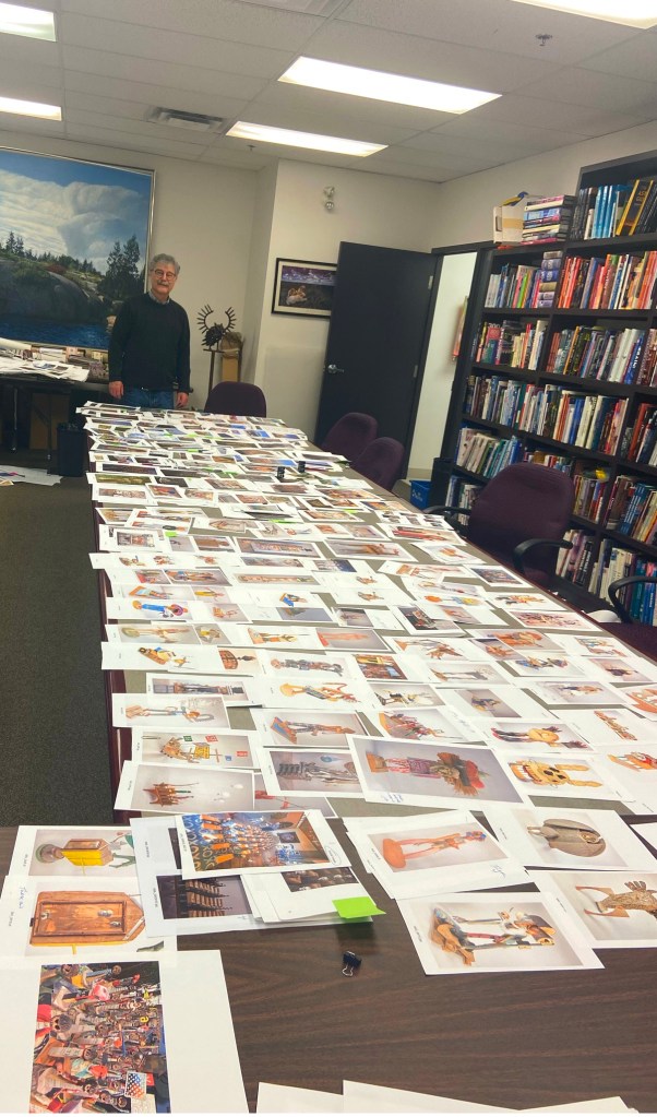 As the book comes nearer to completion we can safely describe it as being 10” x 14” hardcover two-sided (or upside-down) book with about half being dedicated to each of the Tinkls’ work. This 300 pages book will be $95.00. Basically two books for the price of one.